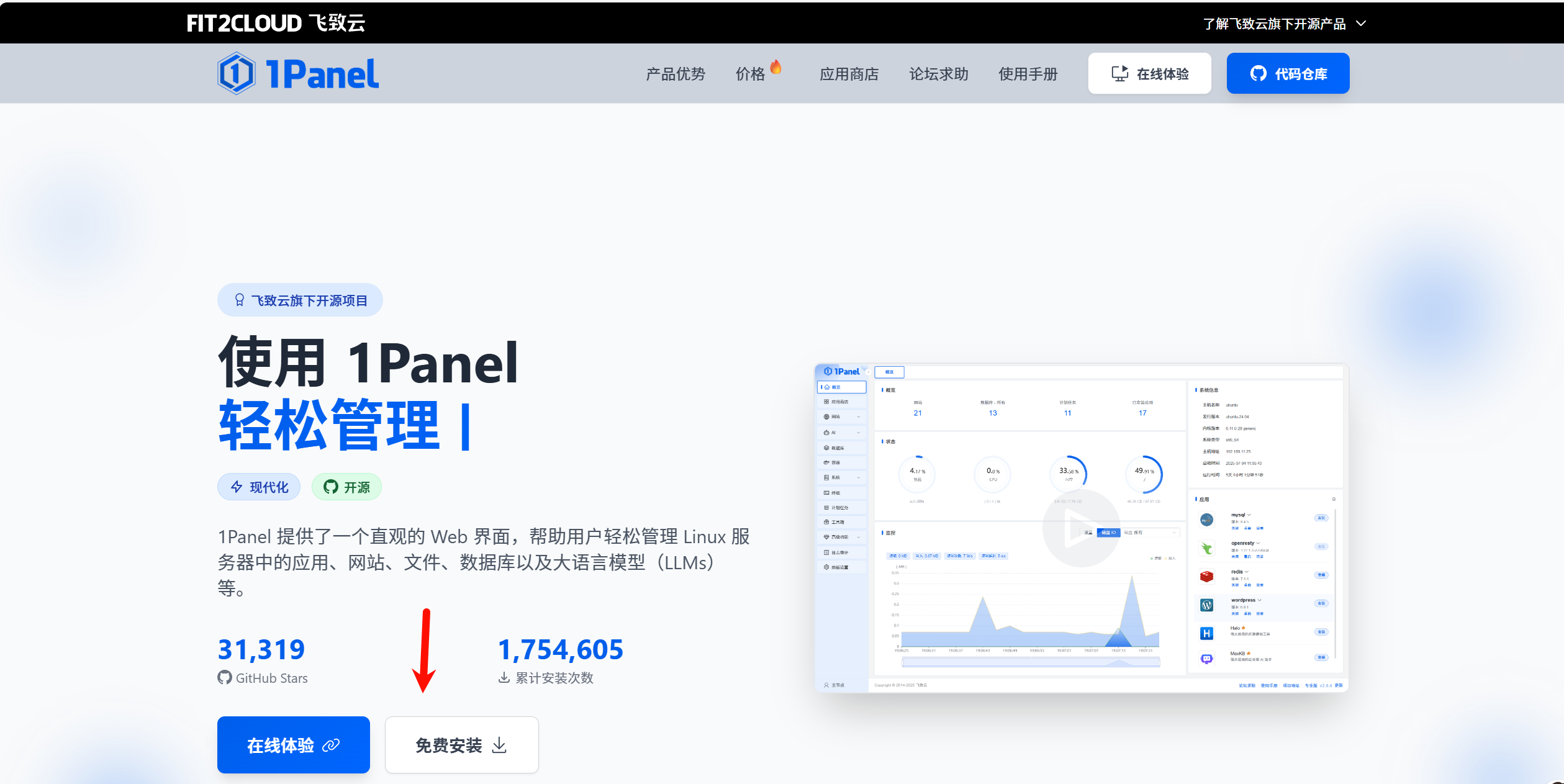 进入1panel官网